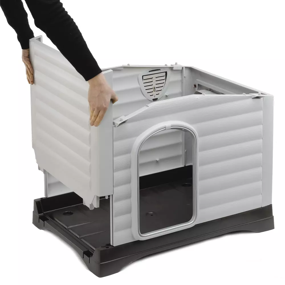 Ferplast Dogvilla 70 er et slitesterkt ute-hus laget av resirkulert, UV-bestandig termoplast. Den solide konstruksjonen gir et trygt og tørt sted for små hunder – og egner seg også svært godt som ly for utegående katter.