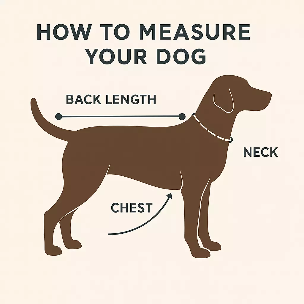 Tips: Mål hunden fra nakkeknuten til haleroten for rygglengde. Mål brystet rundt det bredeste punktet bak forbeina for korrekt brystmål.
