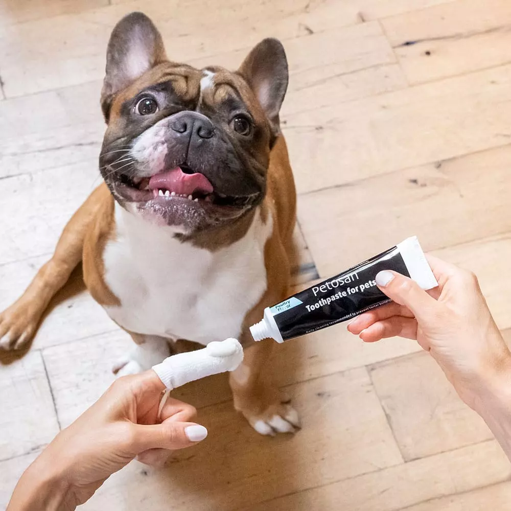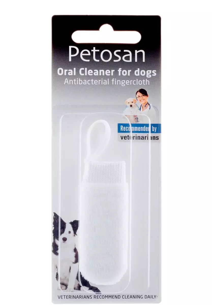 Petosan Oral Cleaner er en enkel og skånsom løsning for daglig tannpleie hos hund og katt. Den myke mikrofiberkluten tres over fingeren og gjør det lett å fjerne plakk og bakterier uten bruk av kjemikalier.
